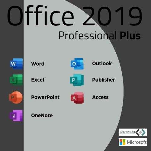 Microsoft Office Professional Plus 2019 beinhaltet Word, Excel, Powerpoint, Outlook, Access, Publisher, OneNote und Skype